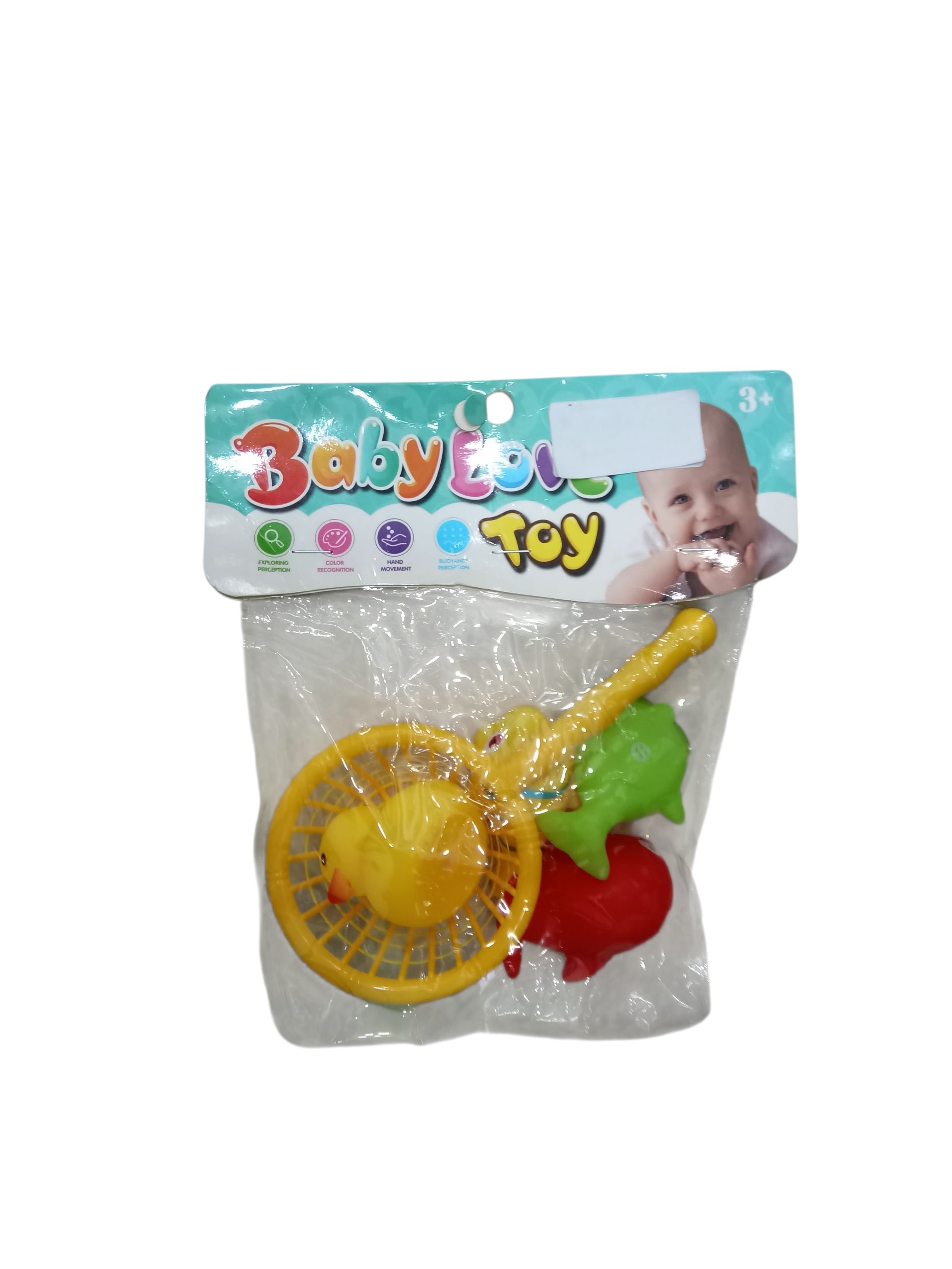Description: Fun baby bath toy set with a small fishing net and floating animal toys. Ideal for playful water activities that help improve hand-eye coordination and color recognition.