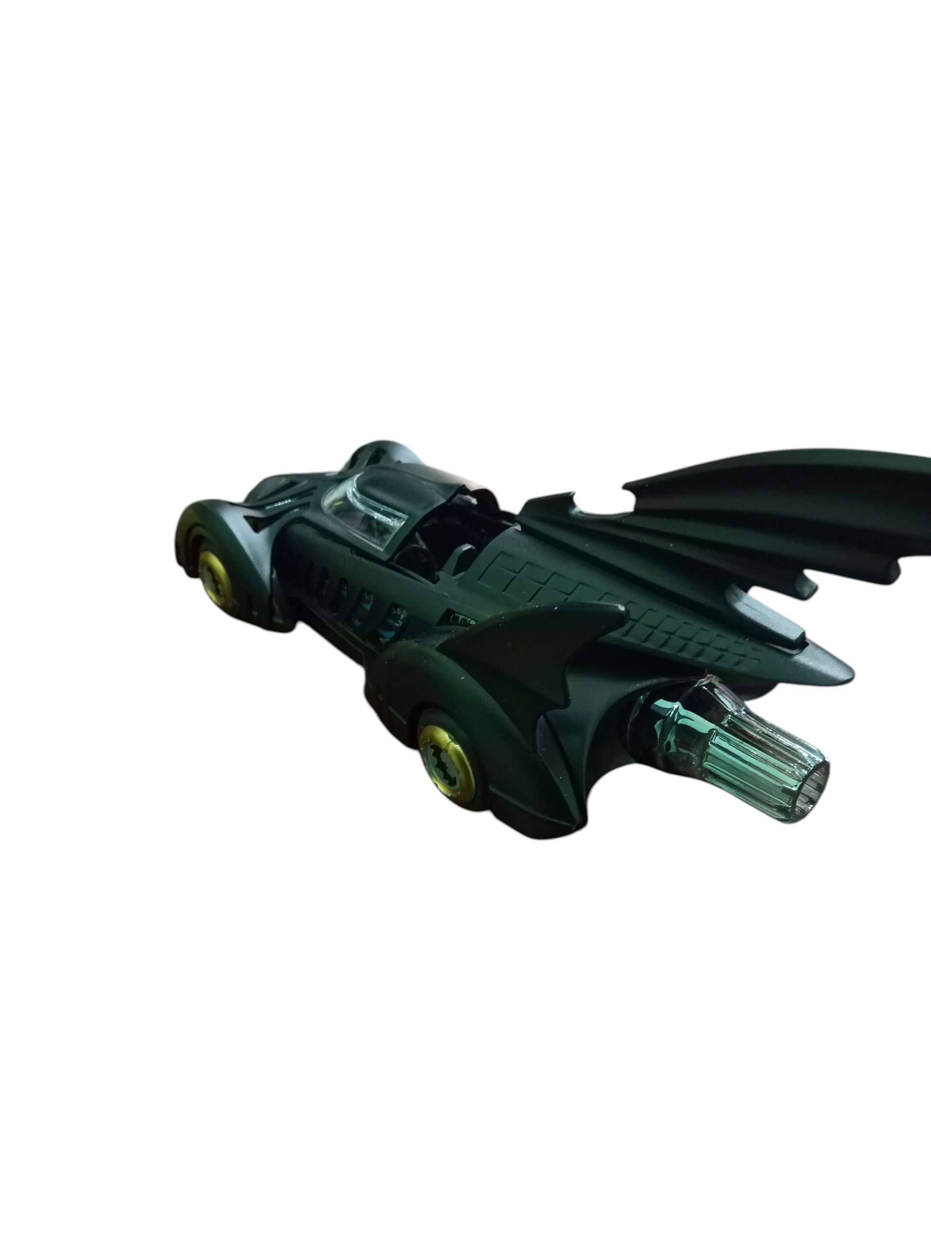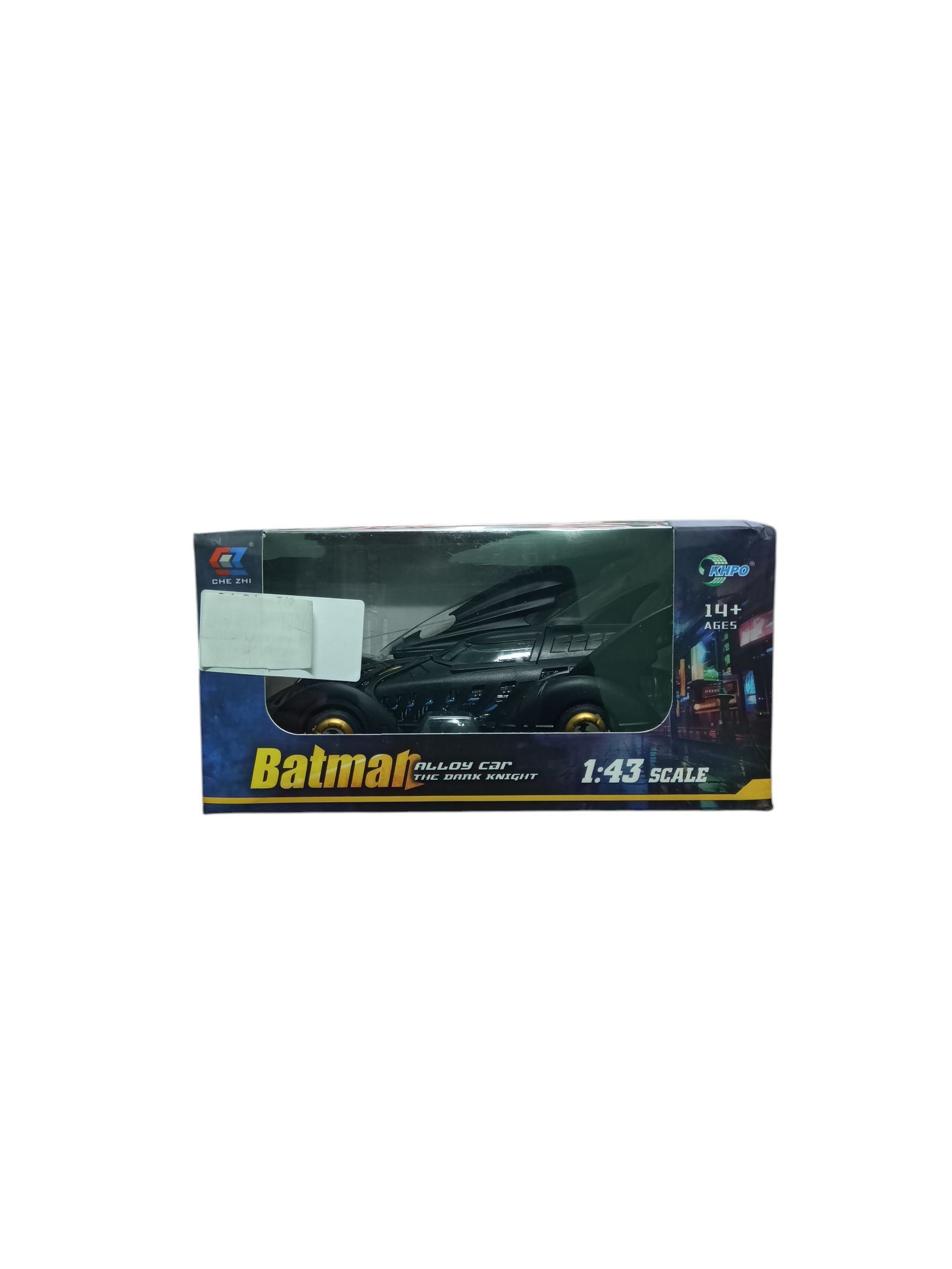 This is a black, die-cast Batmobile from The Dark Knight. It has a scale of 1:43 and is suitable for ages 14 and up.
