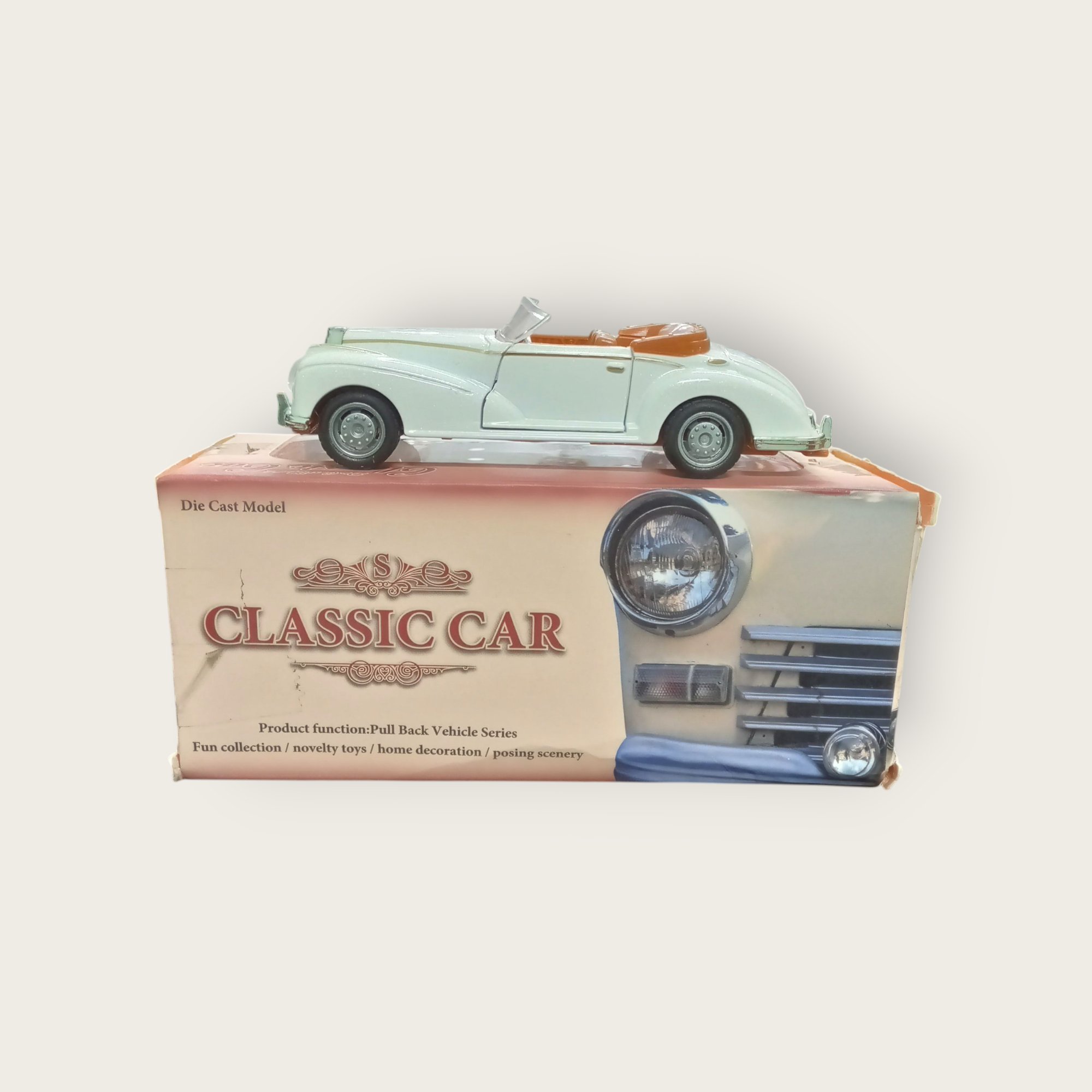 Add a touch of nostalgia with this Vintage Classic Convertible Die-Cast Car. Featuring a sleek design, pull-back action, and fine detailing, it’s perfect for collectors, décor, or gifting.