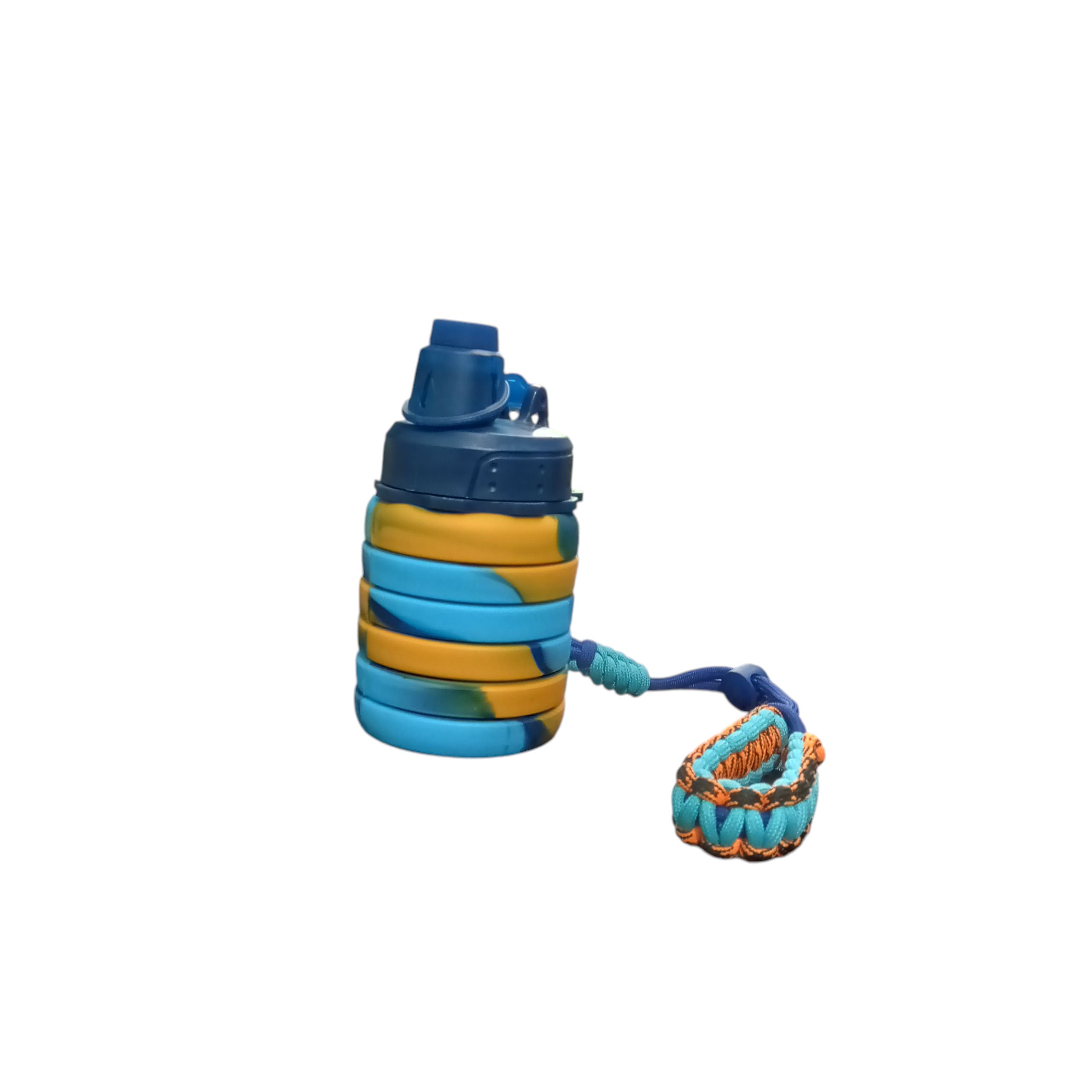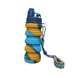Flexible, foldable silicone water bottle with sturdy strap and carabiner, perfect for saving space and carrying easily during travel, sports, or outdoor adventures.