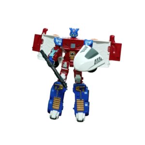A red and blue robot that converts into a truck, with interactive features. Suitable for kids 3+, it encourages imaginative play and motor skills.