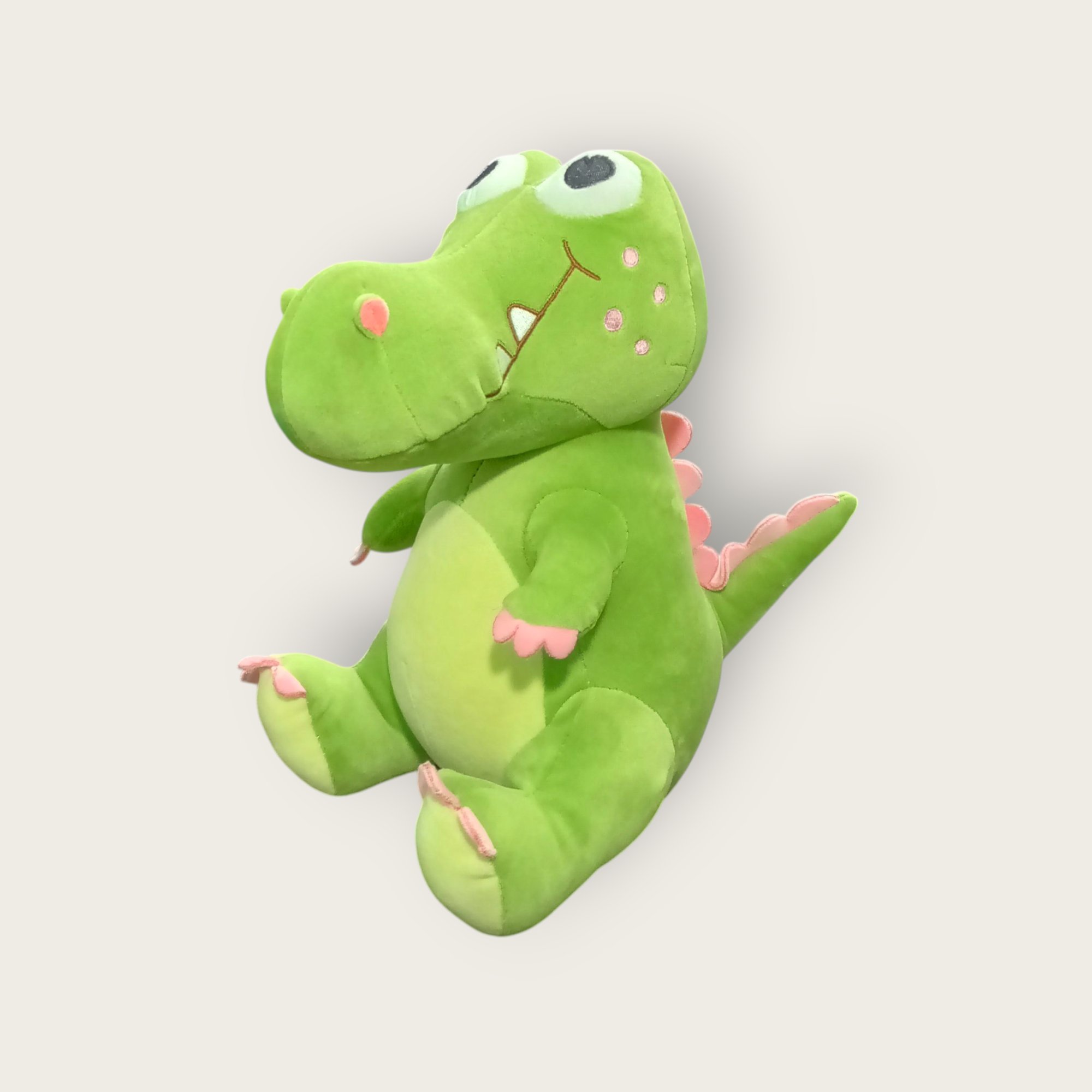 Make playtime roar-some with this adorable green dinosaur soft toy! With its friendly face, chubby belly, and pink accents, this plush dino is perfect for snuggles, storytelling, and gift-giving.