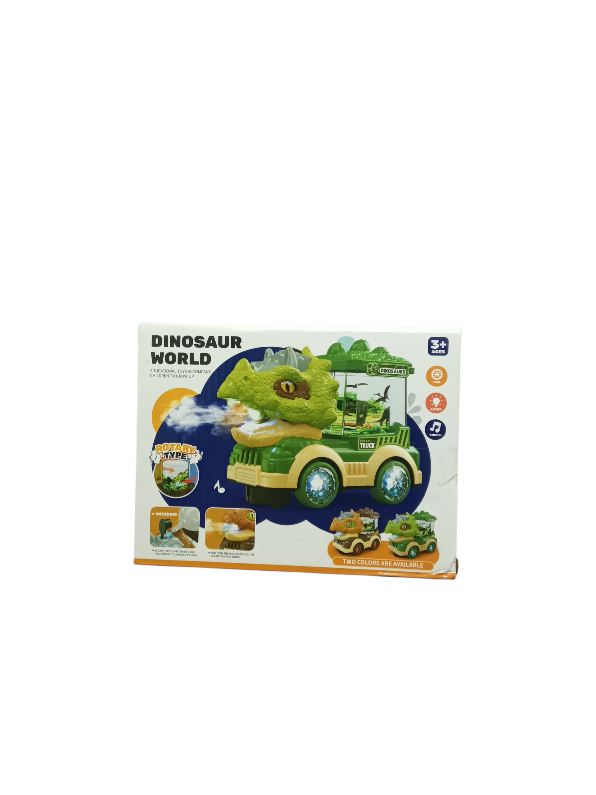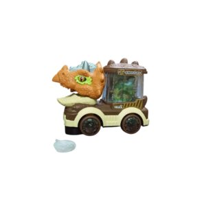A dinosaur-themed toy truck with sound, lights, and mist spray. Exciting rotary movement makes it engaging and fun for kids who love dinosaurs.