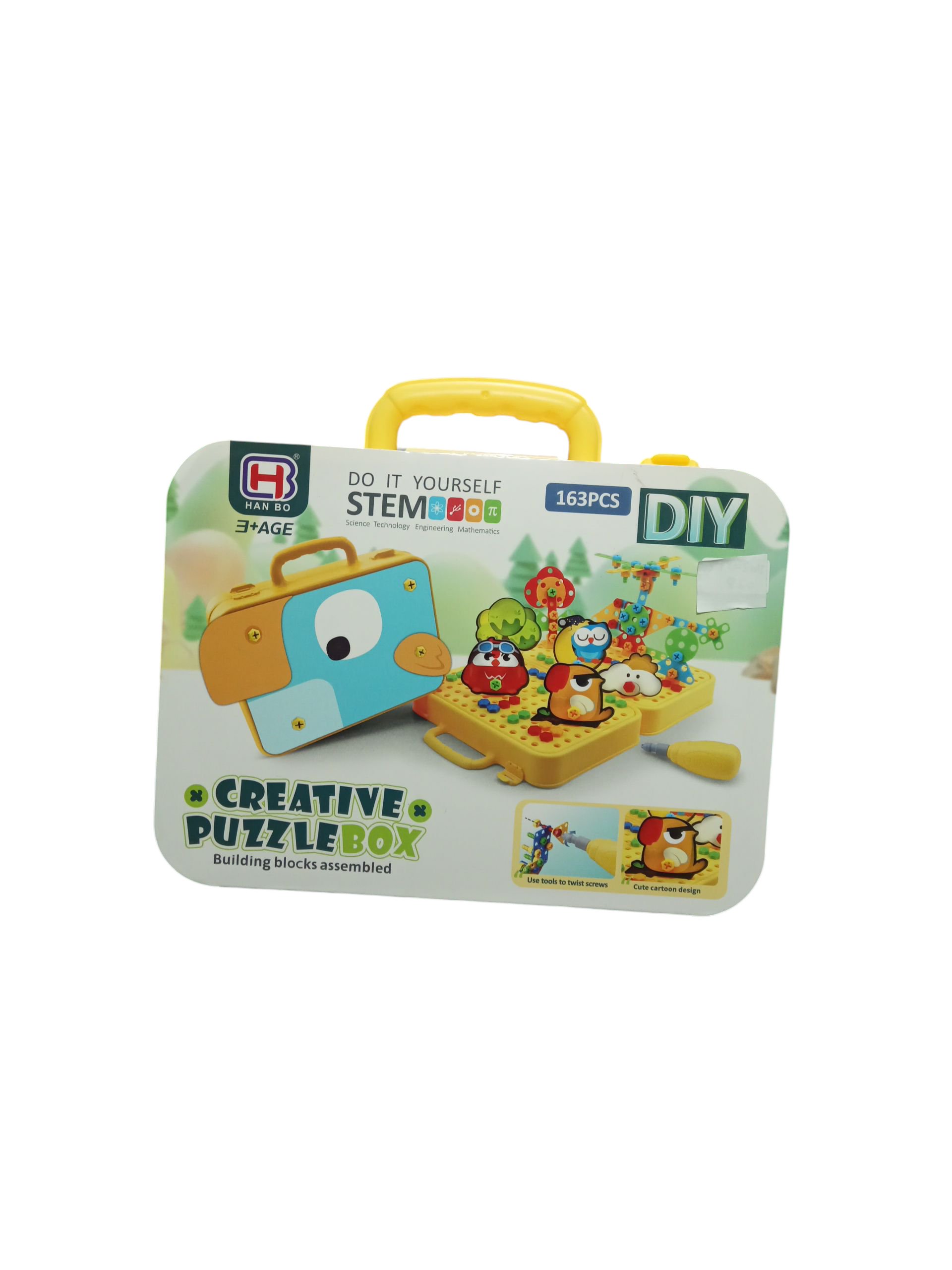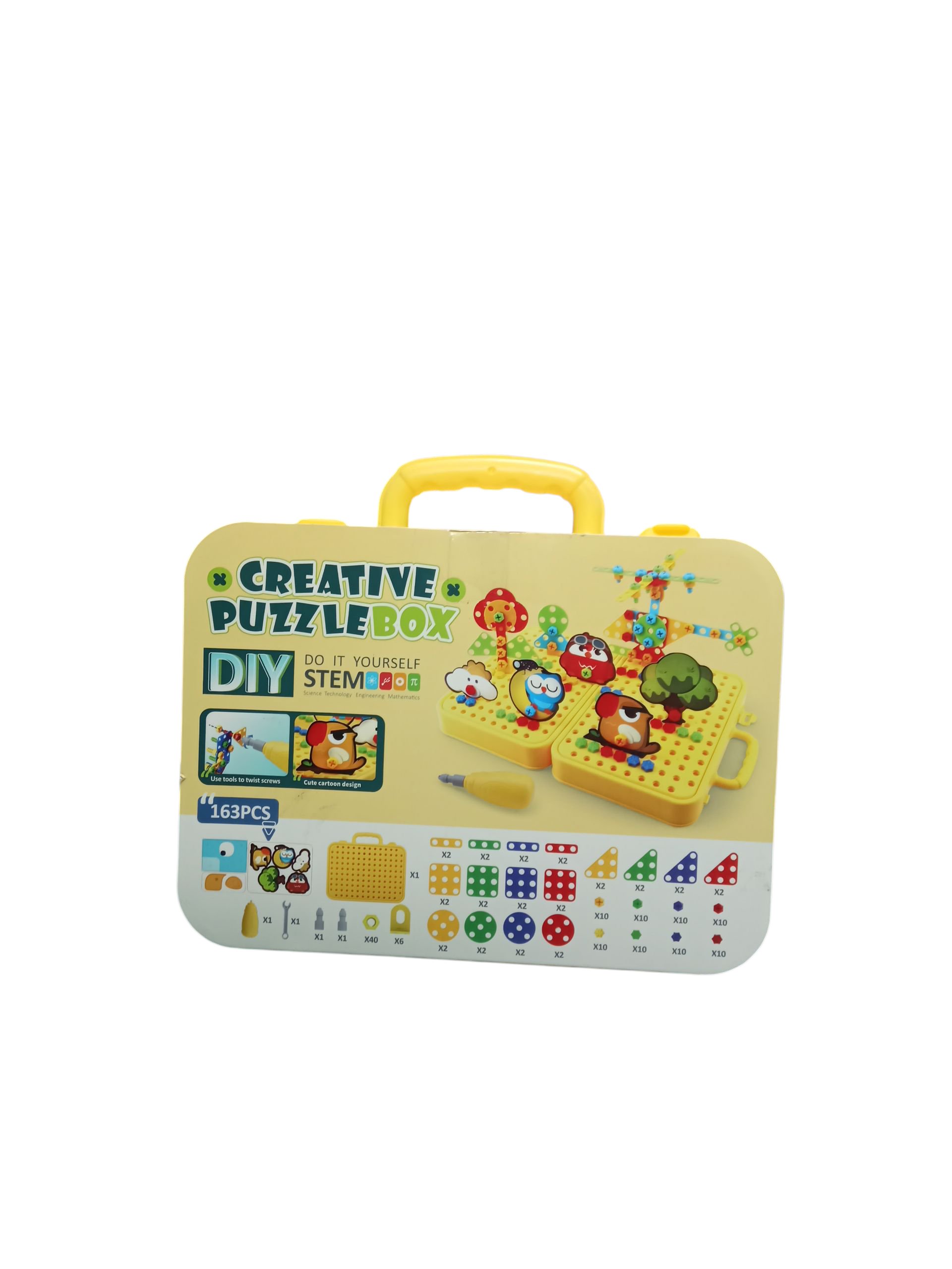 STEM educational set for kids aged 3+, including 163 pieces and tools to assemble creative puzzles. Encourages logical thinking, engineering skills, and creativity.