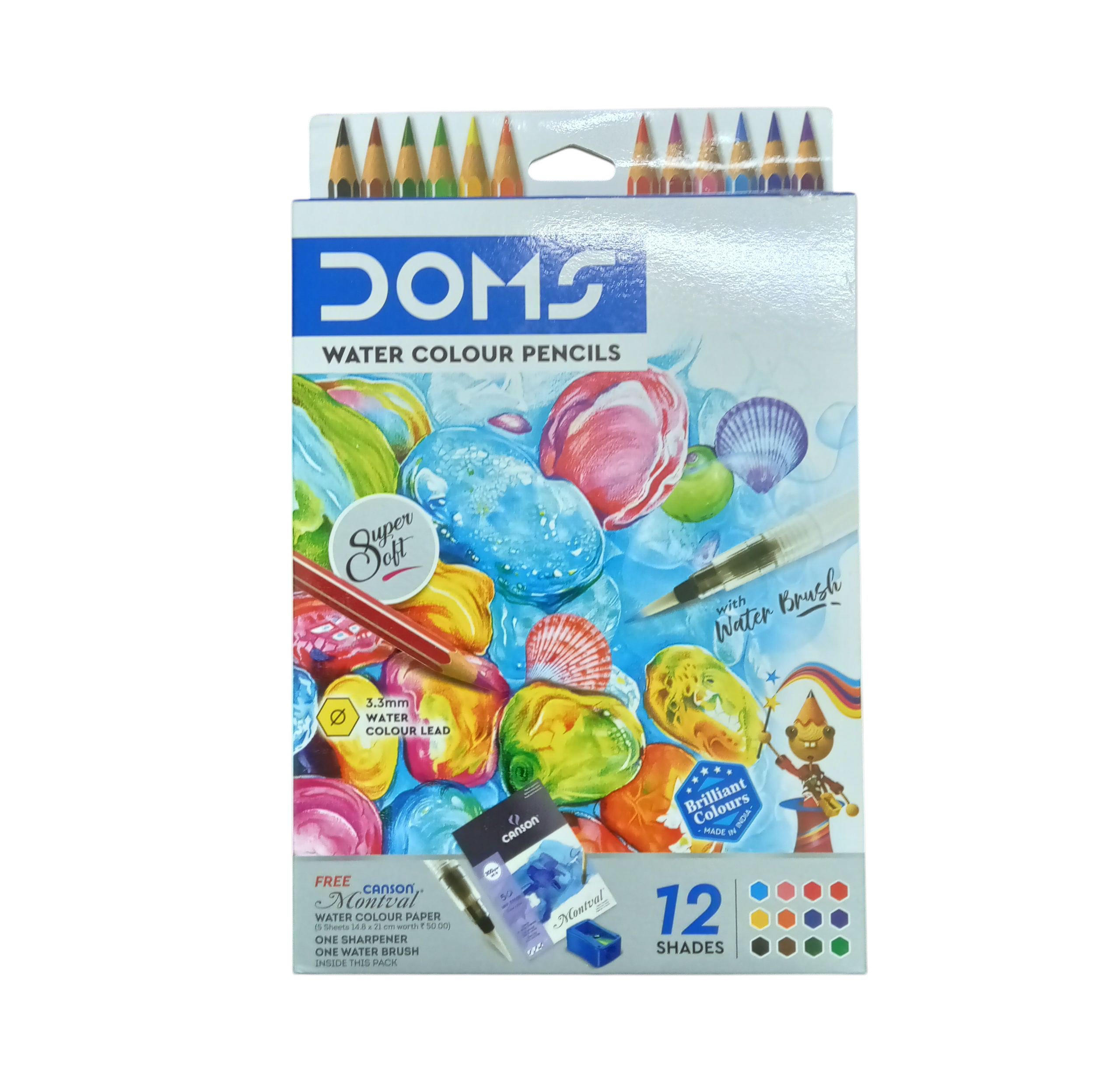 Super soft 3.3mm water colour lead pencils with brilliant shades. Includes water brush, sharpener, and free watercolour paper for easy blending and painting.