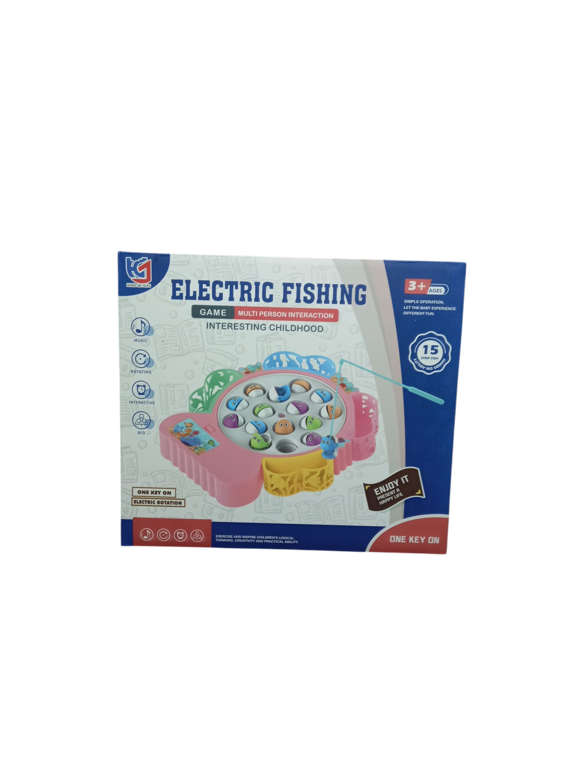 This product is an Electric Fishing Game, designed for multi-person interaction. The box highlights features like music, rotating motion, and interactive play. It’s recommended for ages 3 and up and promises an “interesting childhood” experience.
