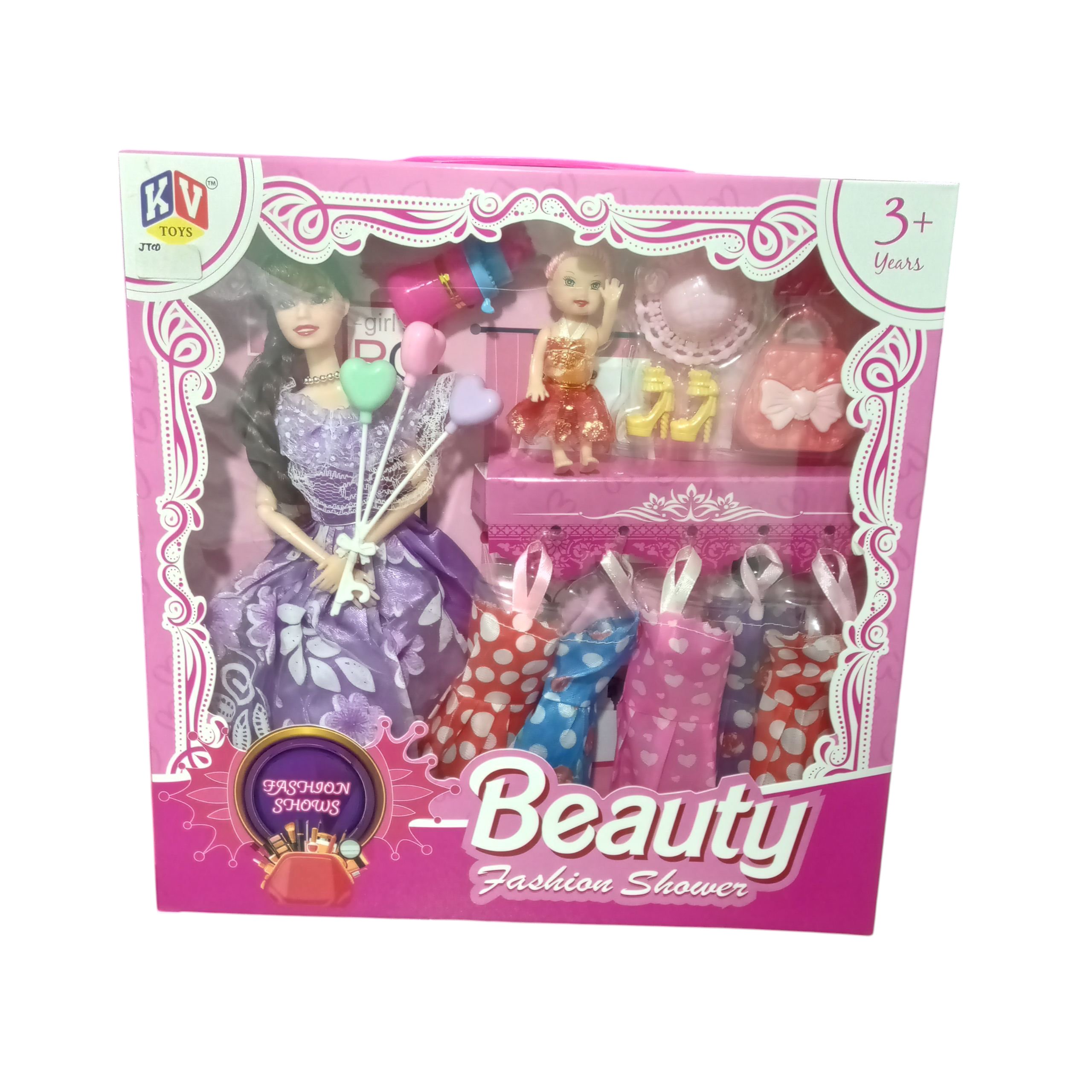 Step into style with the Beauty Fashion Shower Doll Set! This glamorous set includes a fashion doll, mini doll, stylish dresses, shoes, handbags, and accessories for endless dress-up fun. Perfect for kids aged 3+, it inspires creativity, storytelling, and fashion play.