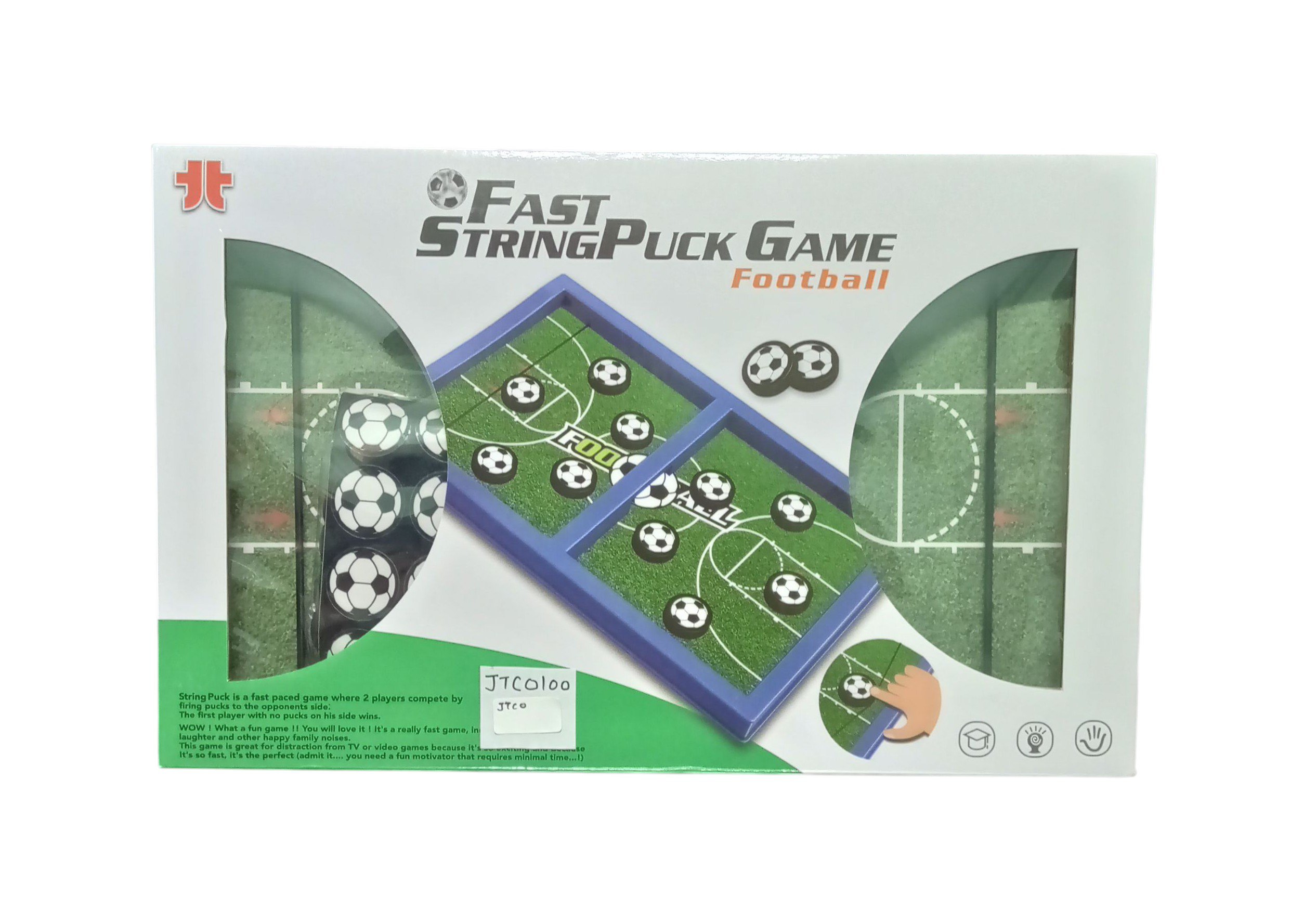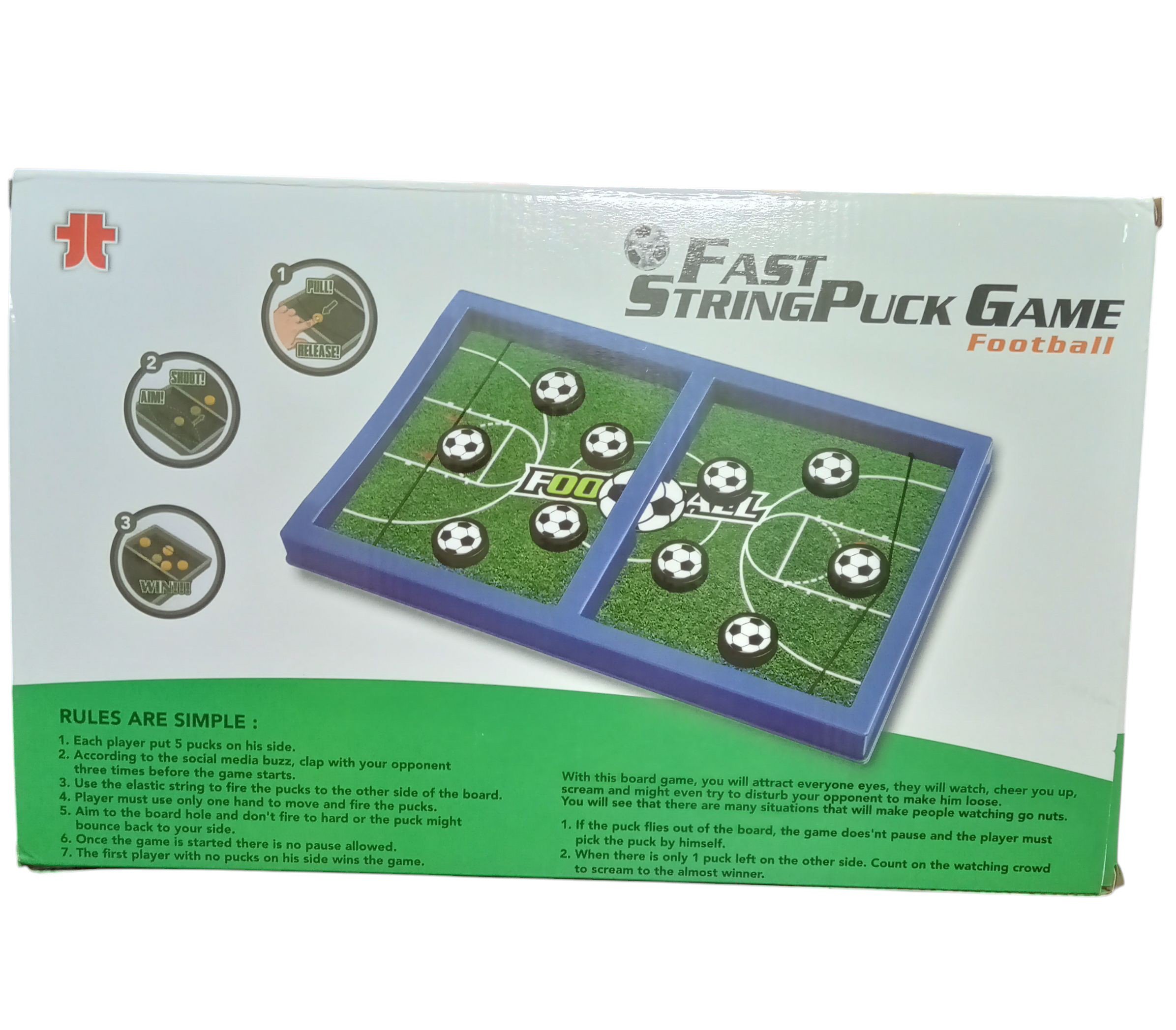 Fast-paced 2-player sling puck game with football pucks. Shoot all pucks to the opponent’s side to win. Fun for quick reflexes and coordination.