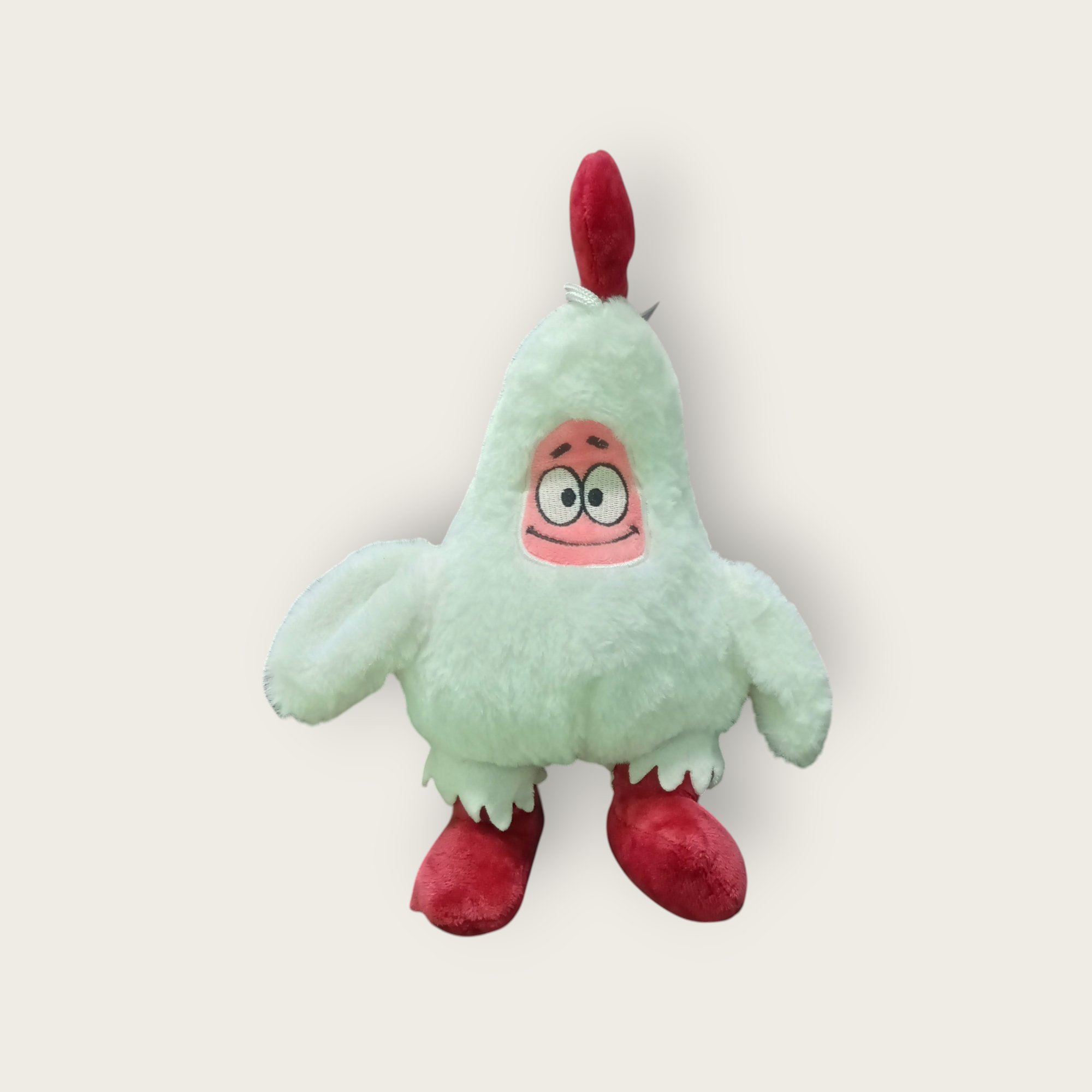 Bring laughter and cuteness together with this hilarious plush toy dressed in a fluffy chicken costume! Featuring a goofy face, soft fabric, and bright red feet and comb, it’s perfect for quirky gifts, fun decor, or cuddly playtime.