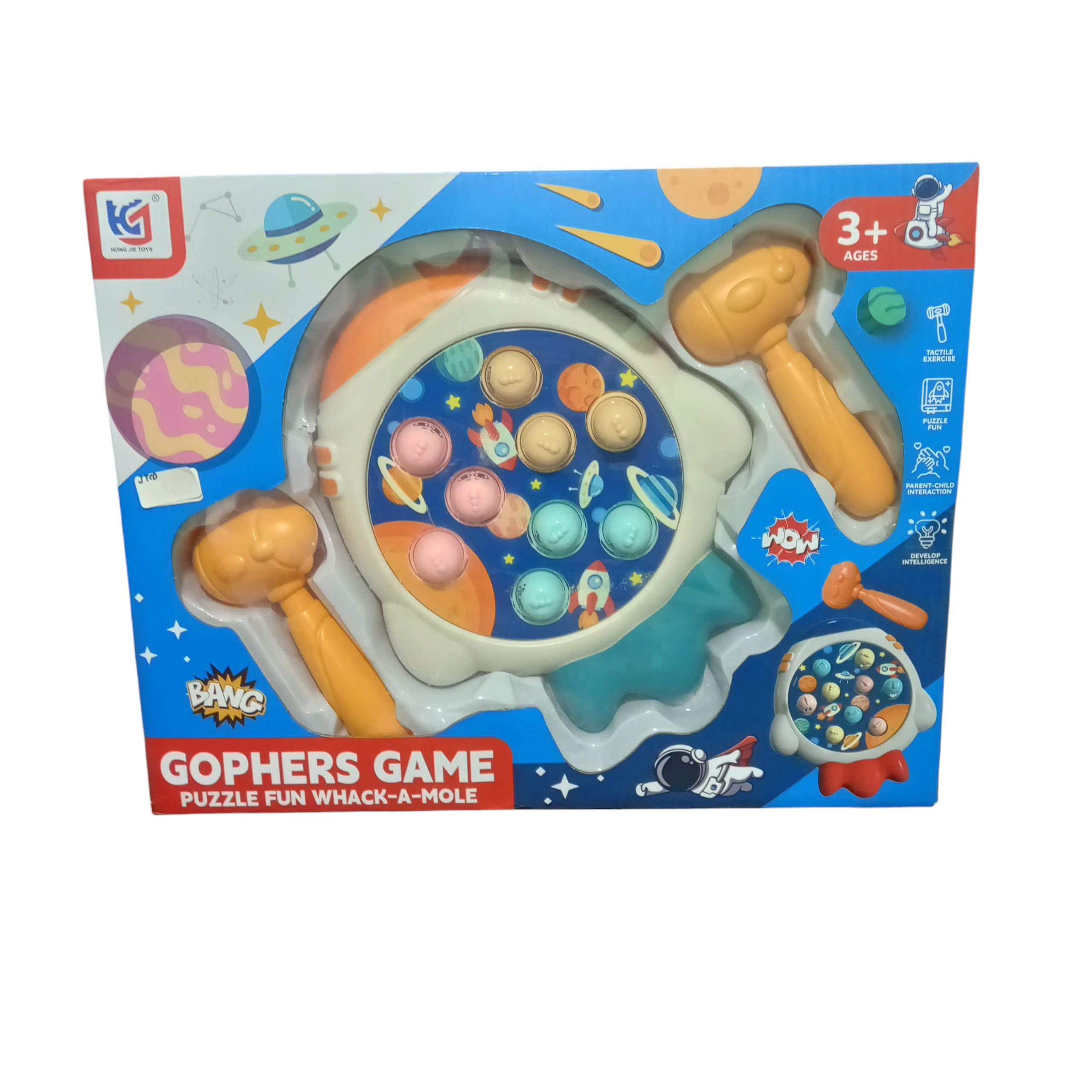 Get ready for action with the Gophers Game – Puzzle Fun Whack-a-Mole! This space-themed game comes with colorful gophers and soft hammers for exciting hit-and-play fun. Perfect for kids aged 3+, it improves hand-eye coordination, reaction time, and motor skills through playful learning.