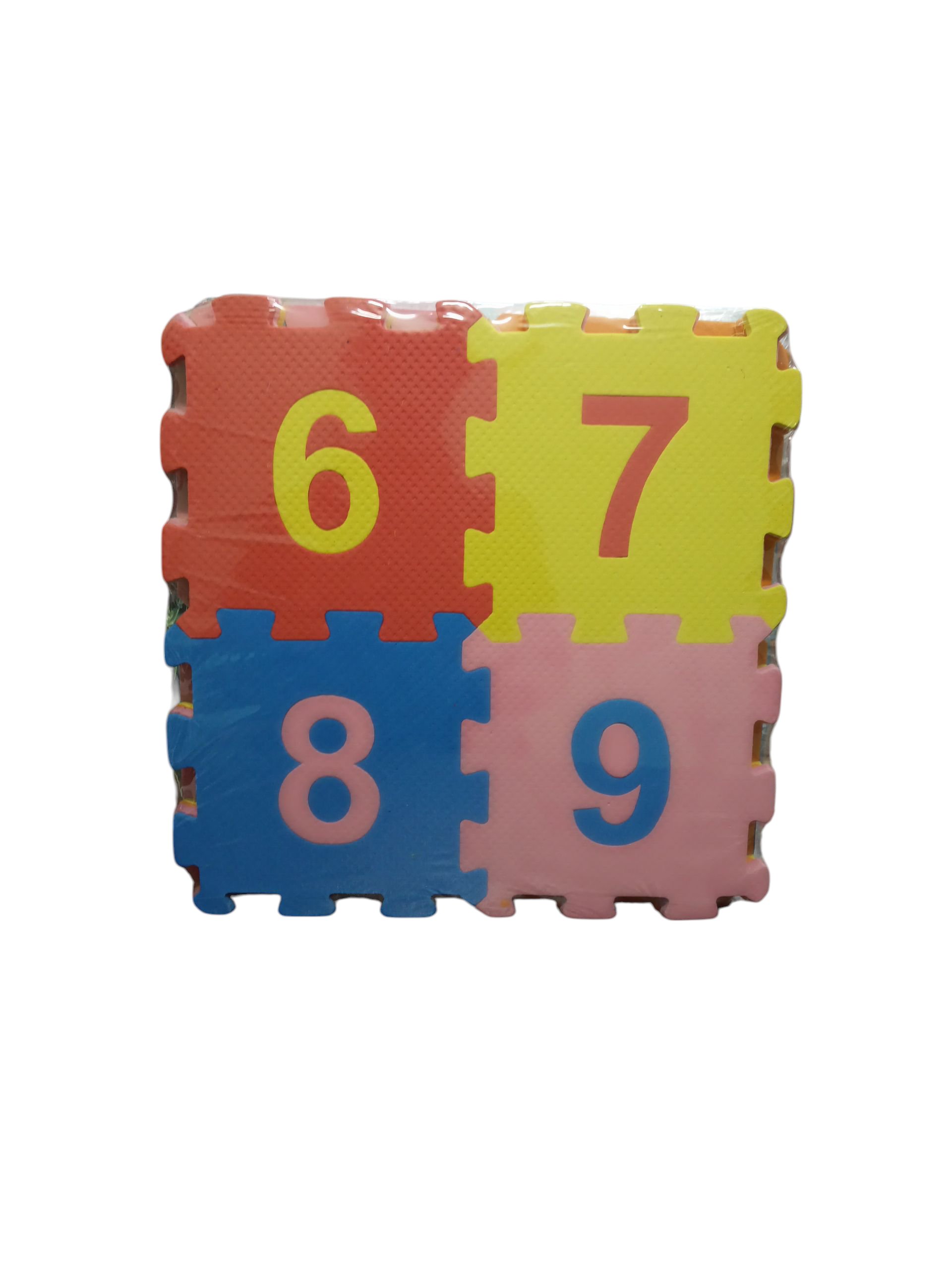 A set of interlocking foam tiles featuring the numbers 6, 7, 8, and 9. The colorful, jumbo-sized puzzle pieces are designed to help young children learn numbers and develop fine motor skills. When assembled, they can be used as a soft, cushioned play area.