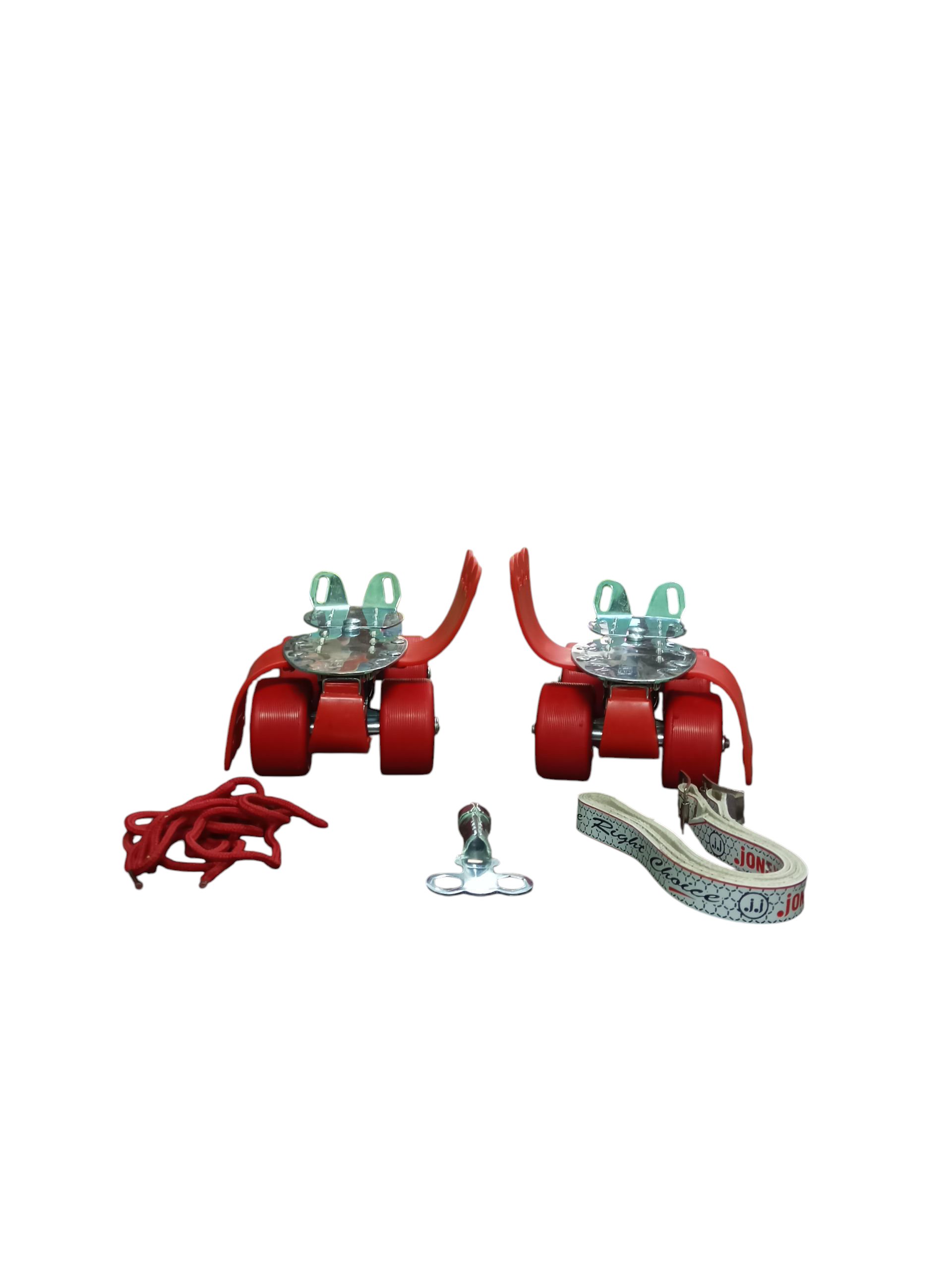 pair of roller skates for kids. The box shows four-wheeled quad skates with a checkered flag and racing theme.