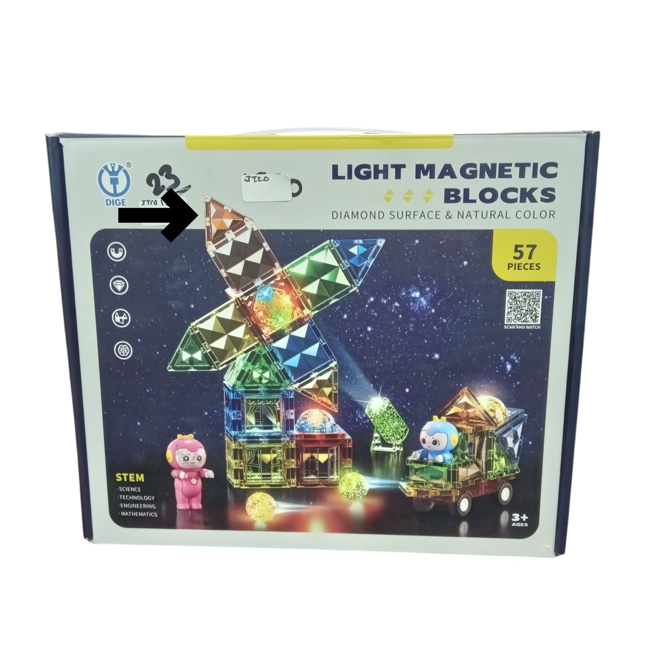 Spark your child’s imagination with this dazzling 57-piece Light Magnetic Blocks Set! Designed with a unique diamond surface and natural color tones, these magnetic tiles easily connect to form vibrant 3D structures. A perfect STEM toy that enhances creativity, motor skills, and early engineering concepts.