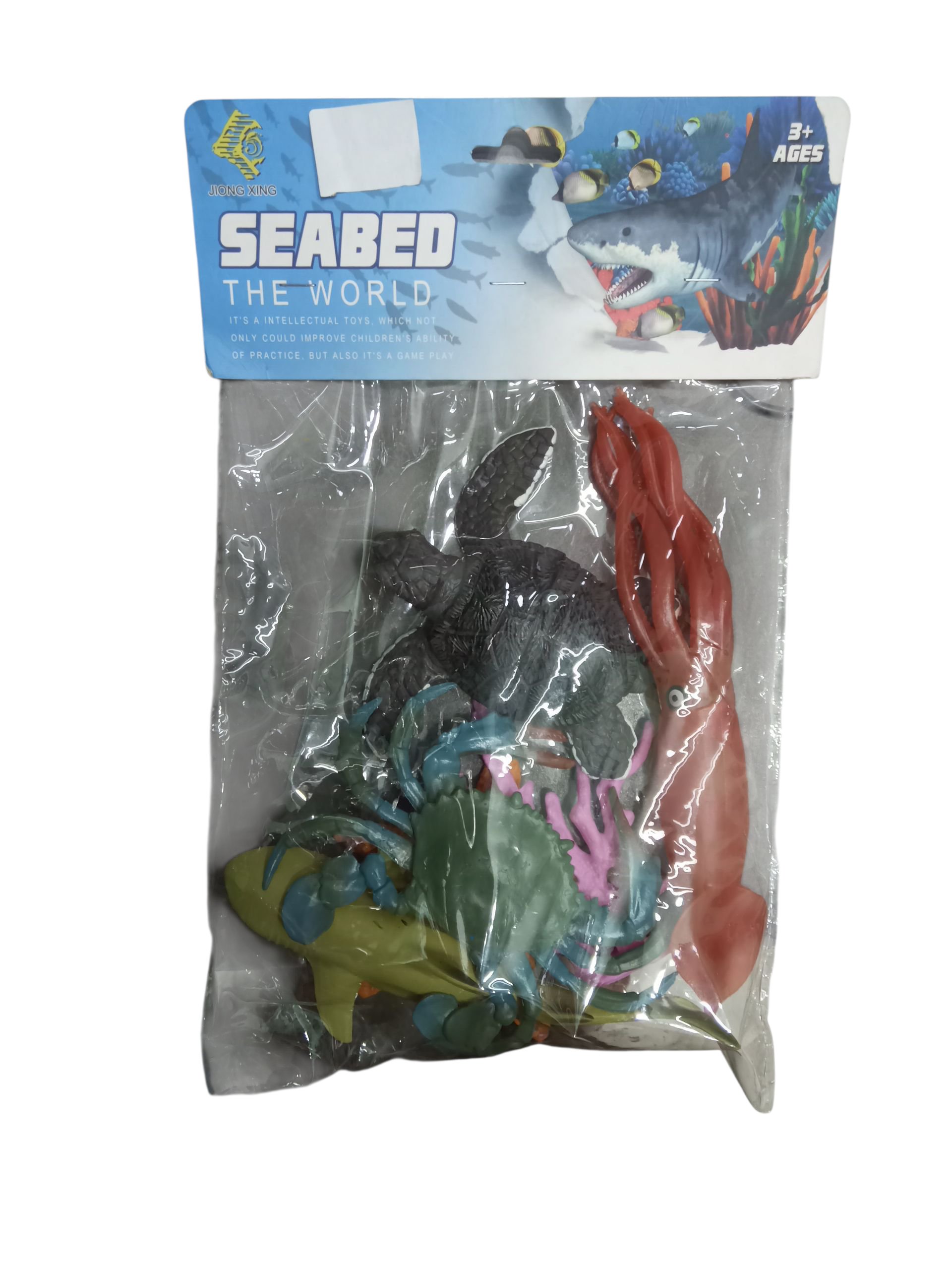 A “Lovely Collection” set of five cartoon-style, soft plastic or rubber sea animal figures (including a dolphin/whale, turtle, and various fish/shells). They appear to be bath toys, possibly squirt toys, and are labeled “NON TOXIC”