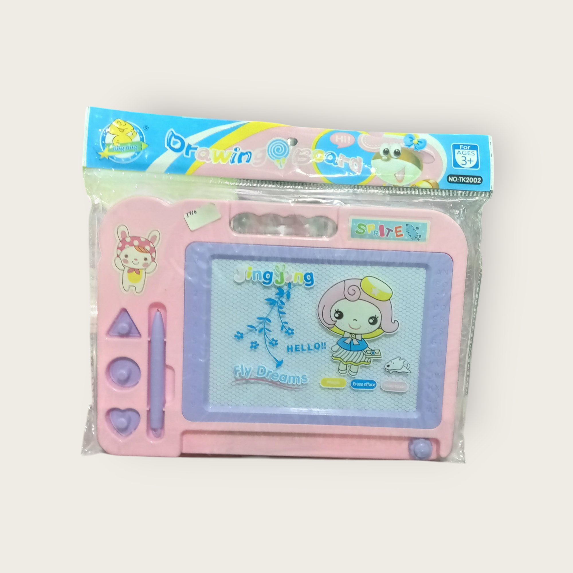 Let your child’s imagination fly with this cute and colorful magnetic drawing board! Featuring fun stamps, an easy-to-use pen, and a smooth sliding eraser, it’s perfect for mess-free creativity. Ideal for ages 3+, this portable board is great for learning, doodling, and playtime fun!