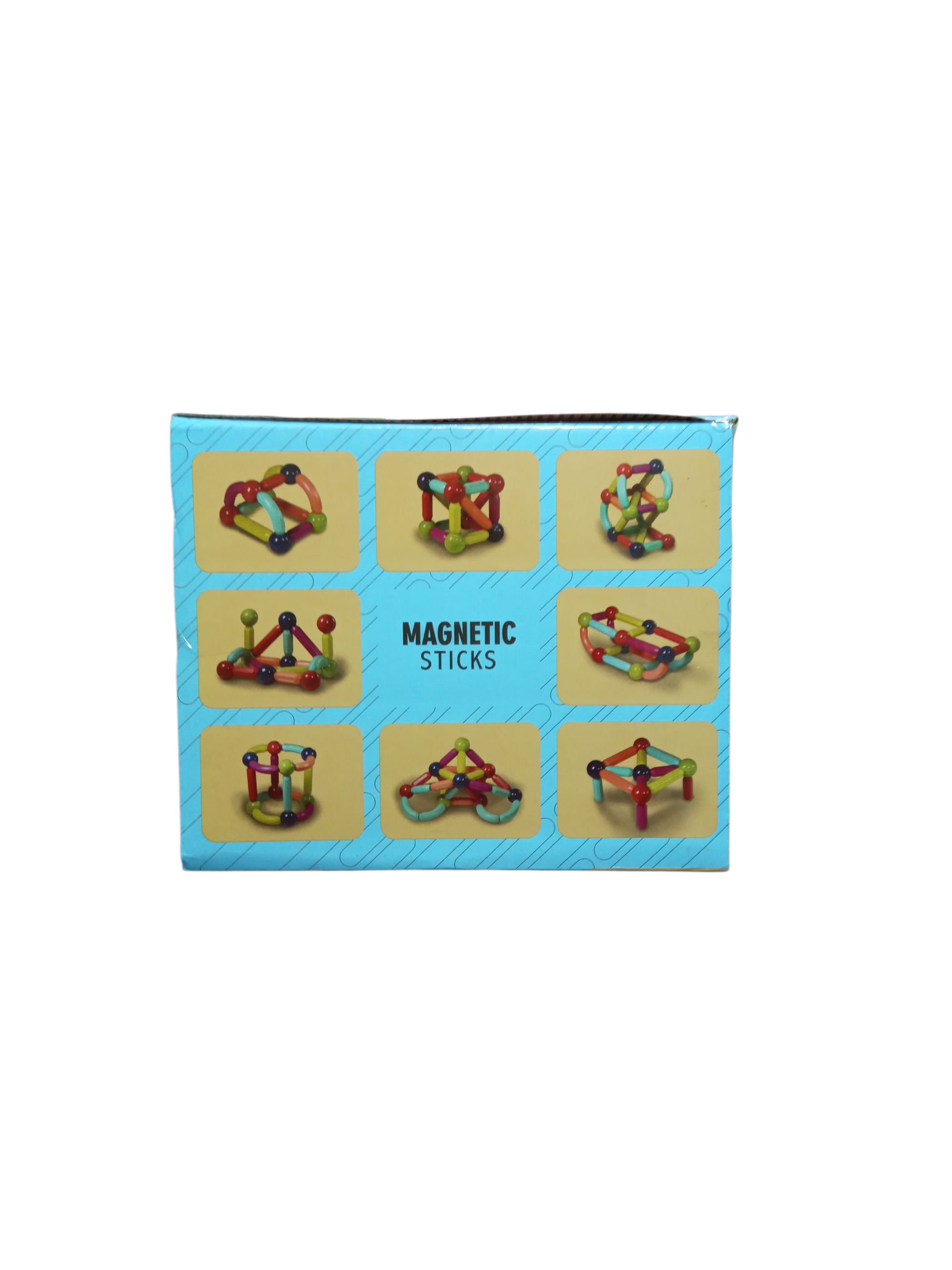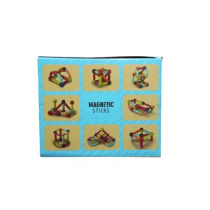 A Magnetic Sticks construction toy set featuring colorful magnetic rods and balls, designed for building and modeling. The packaging highlights it for ages 3+ years and as a STEM toy.