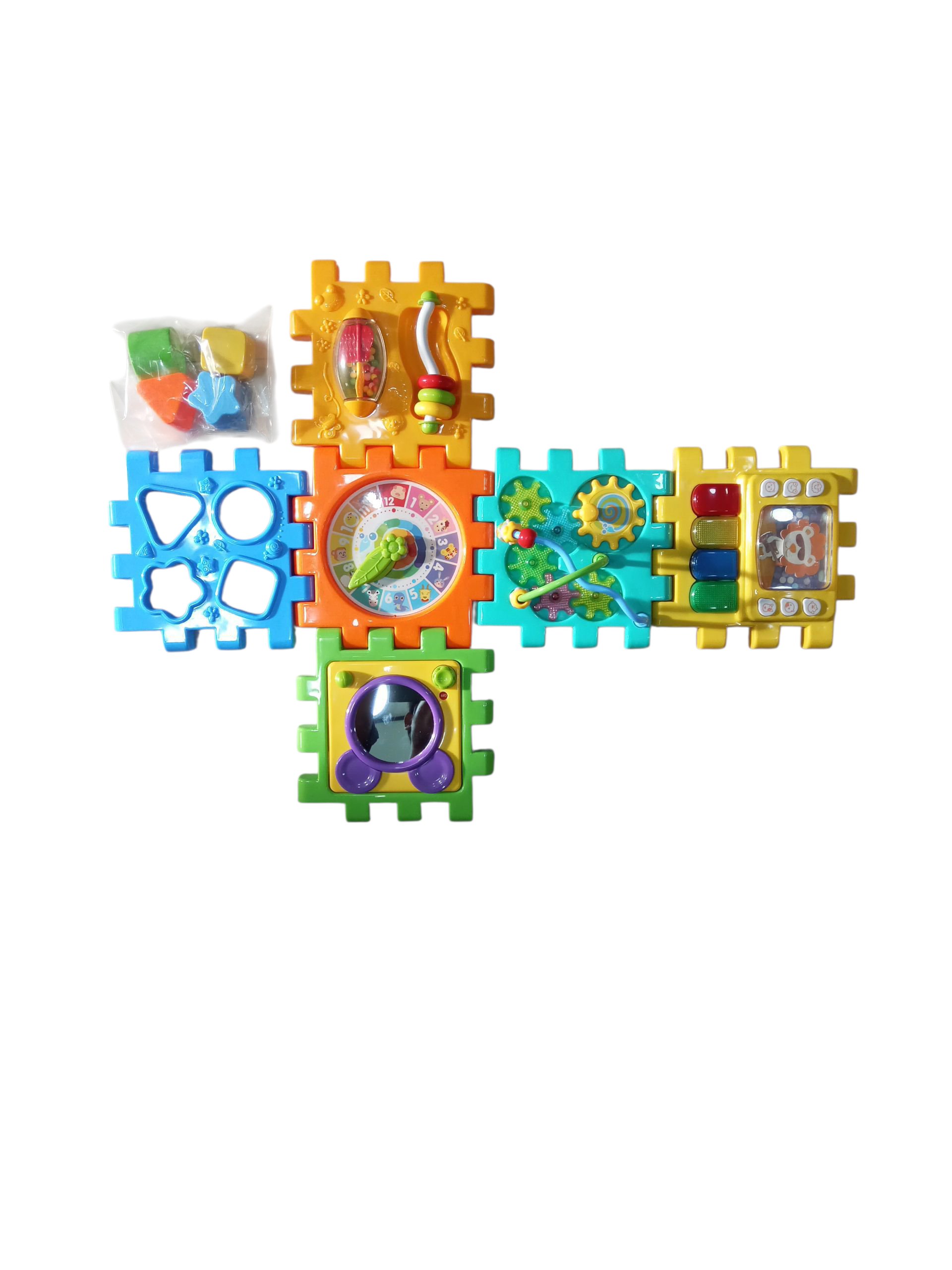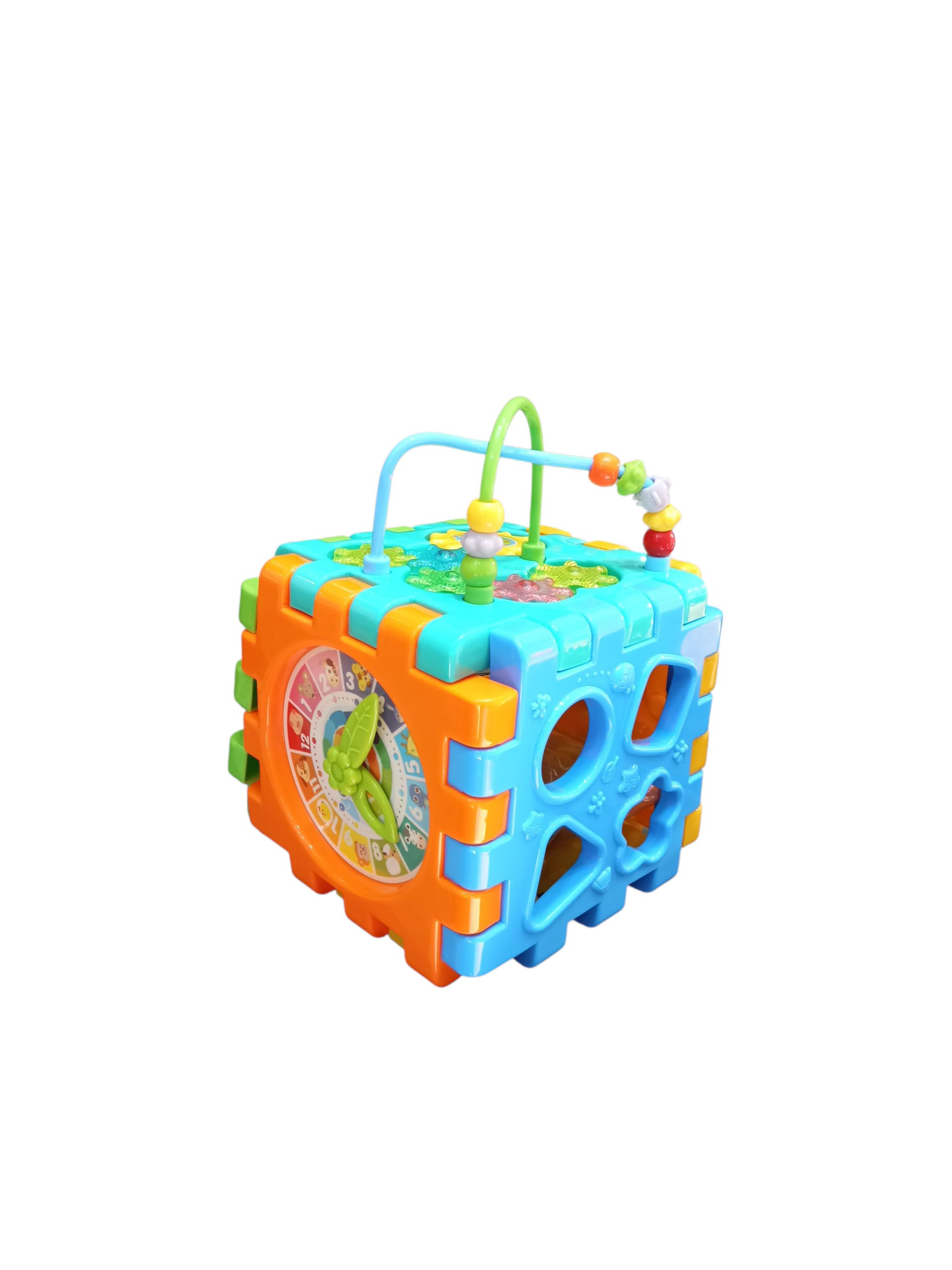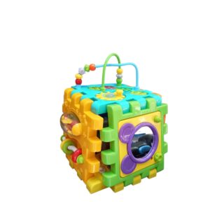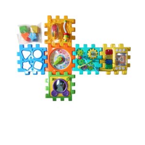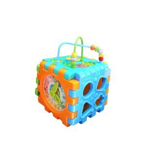 This product is the Play & Learn Activity Cube by Goodway. It’s a 10-piece set designed to be assembled into a cube or various flat shapes. The packaging highlights developmental benefits such as animal cognition, number cognition, physical games, color cognition, and acts as a building block toy. It is recommended for children aged 10 months and older.