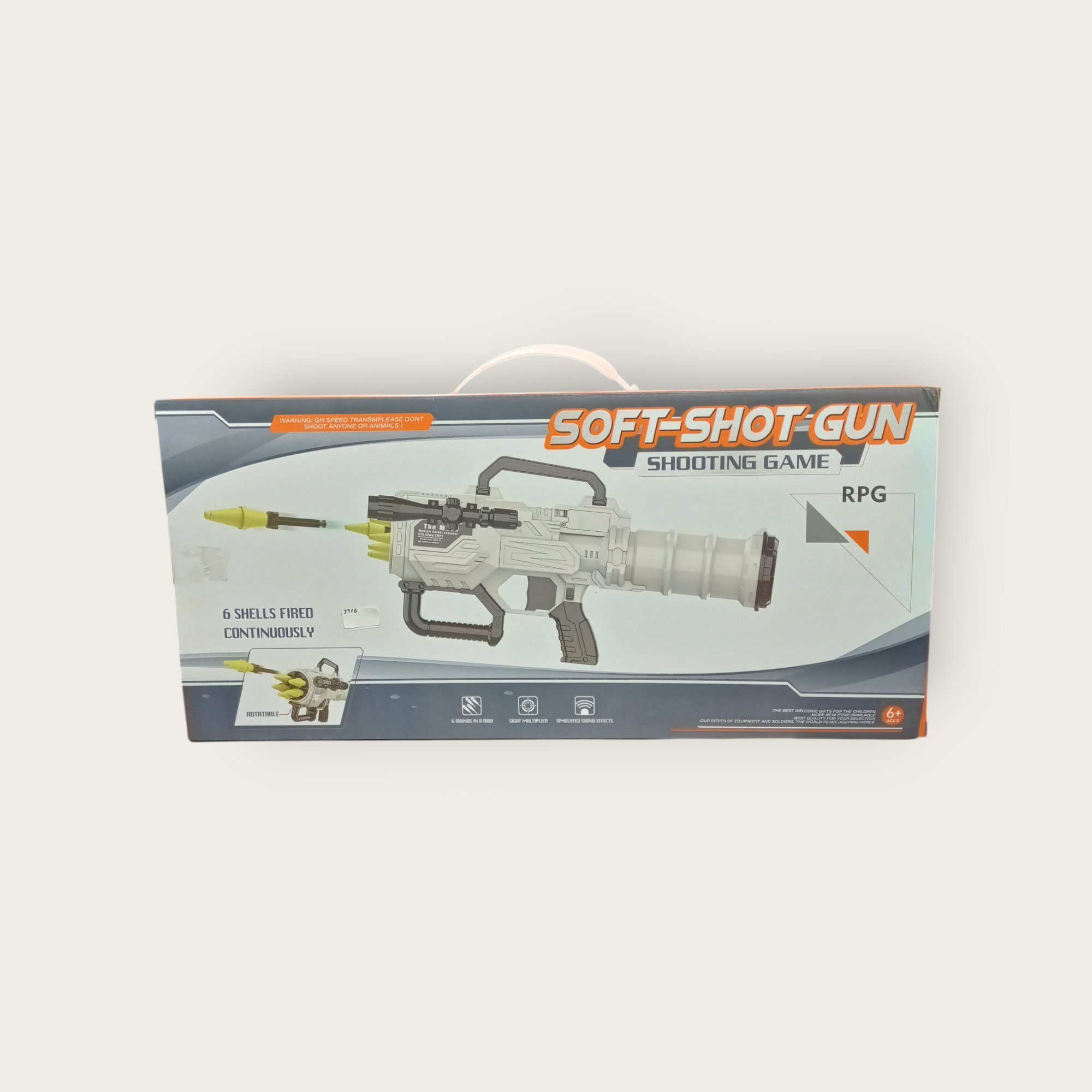 Unleash non-stop action with the RPG Soft Shot Gun! This futuristic blaster fires 6 soft shells continuously, offering exciting and safe play for kids aged 6+. With its bold design and easy grip, it’s perfect for thrilling battles and imaginative fun. A must-have for every young warrior!