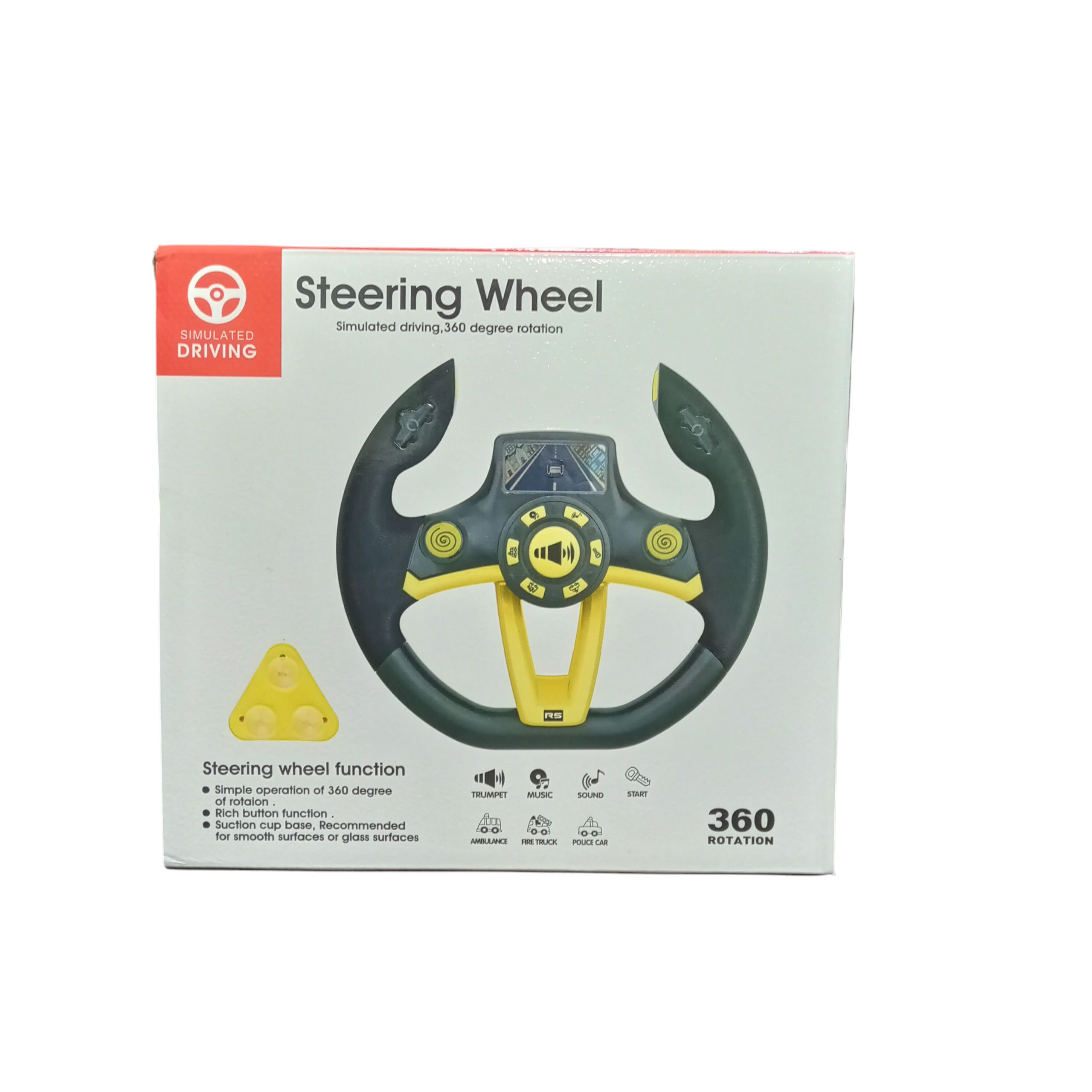 toy steering wheel with 360° rotation, sound effects (car, ambulance, fire truck, police car), and suction base for realistic driving play.