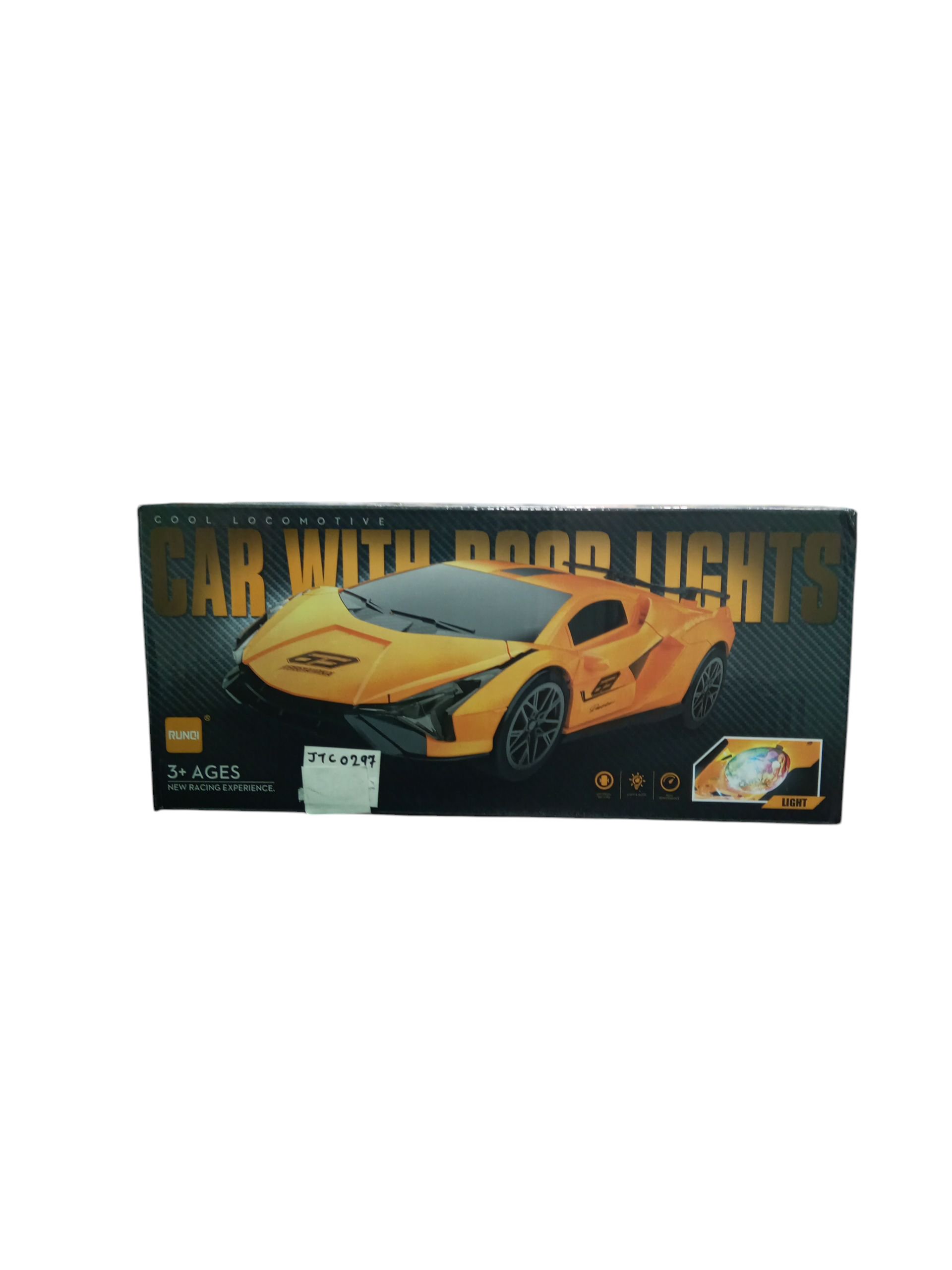 A sleek battery-operated toy car with flashing roof lights, offering kids an exciting racing experience.