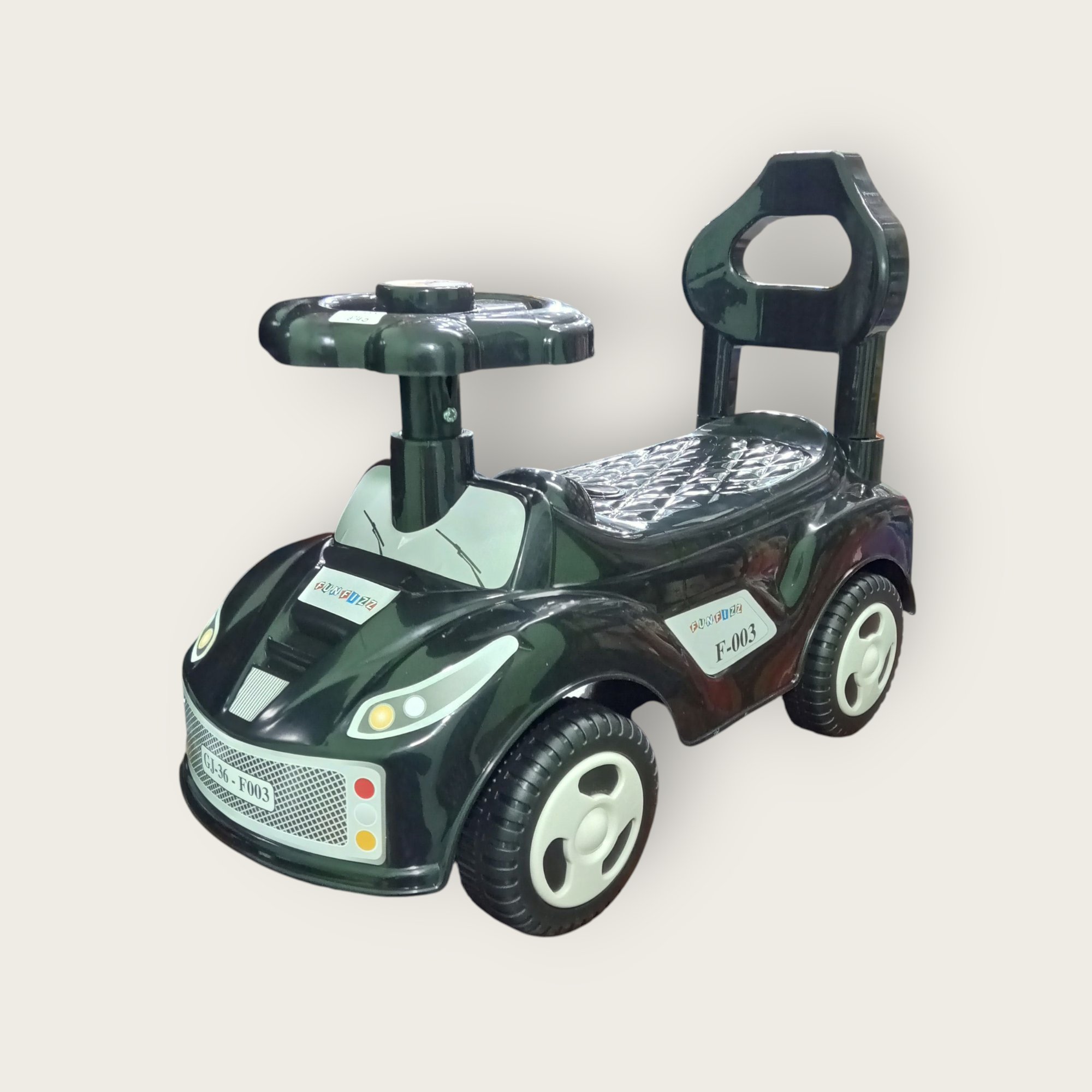 Let your little one zoom around in style with this sleek ride-on car! Featuring a comfortable seat, safety backrest, and easy-to-grip steering, it’s perfect for indoor and outdoor fun. Durable, lightweight, and designed for smooth rides!