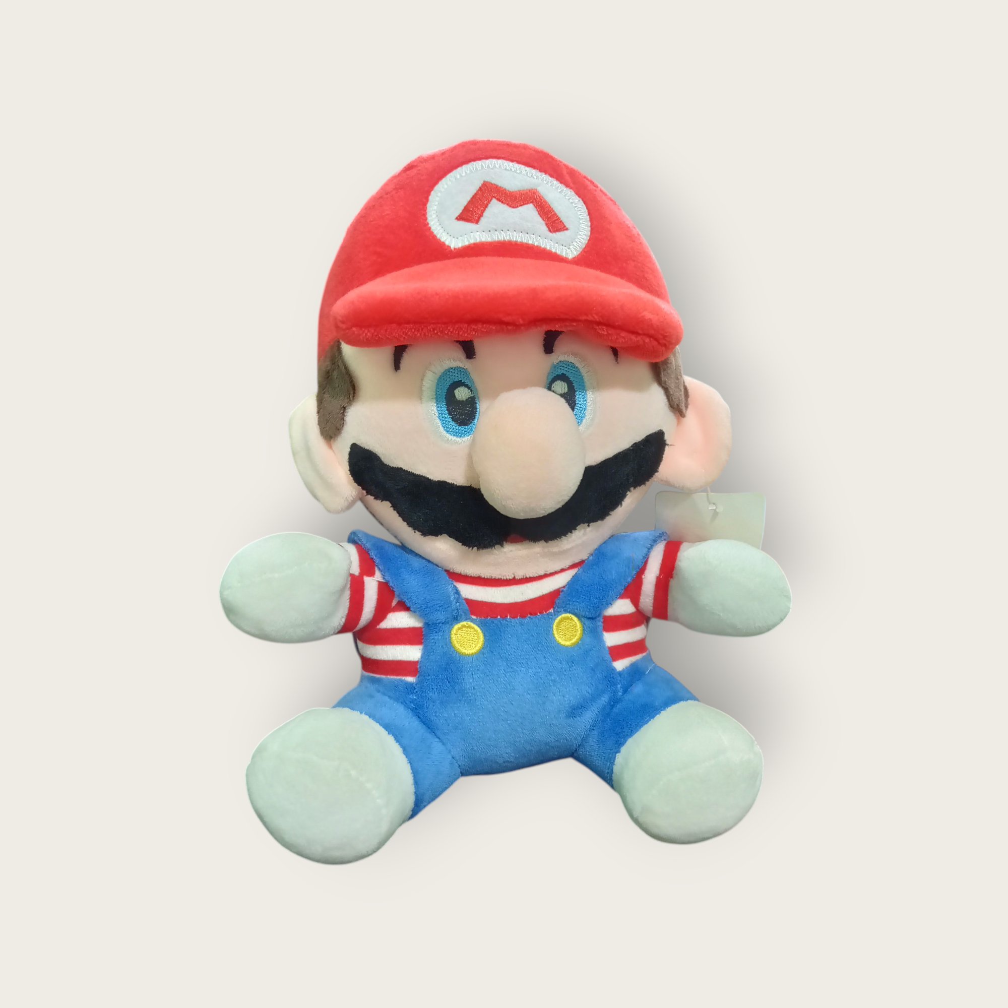 Jump into fun with this adorable Super Mario plush! Dressed in his iconic red cap, striped tee, and blue overalls, this soft toy is a must-have for every little gamer and collector.