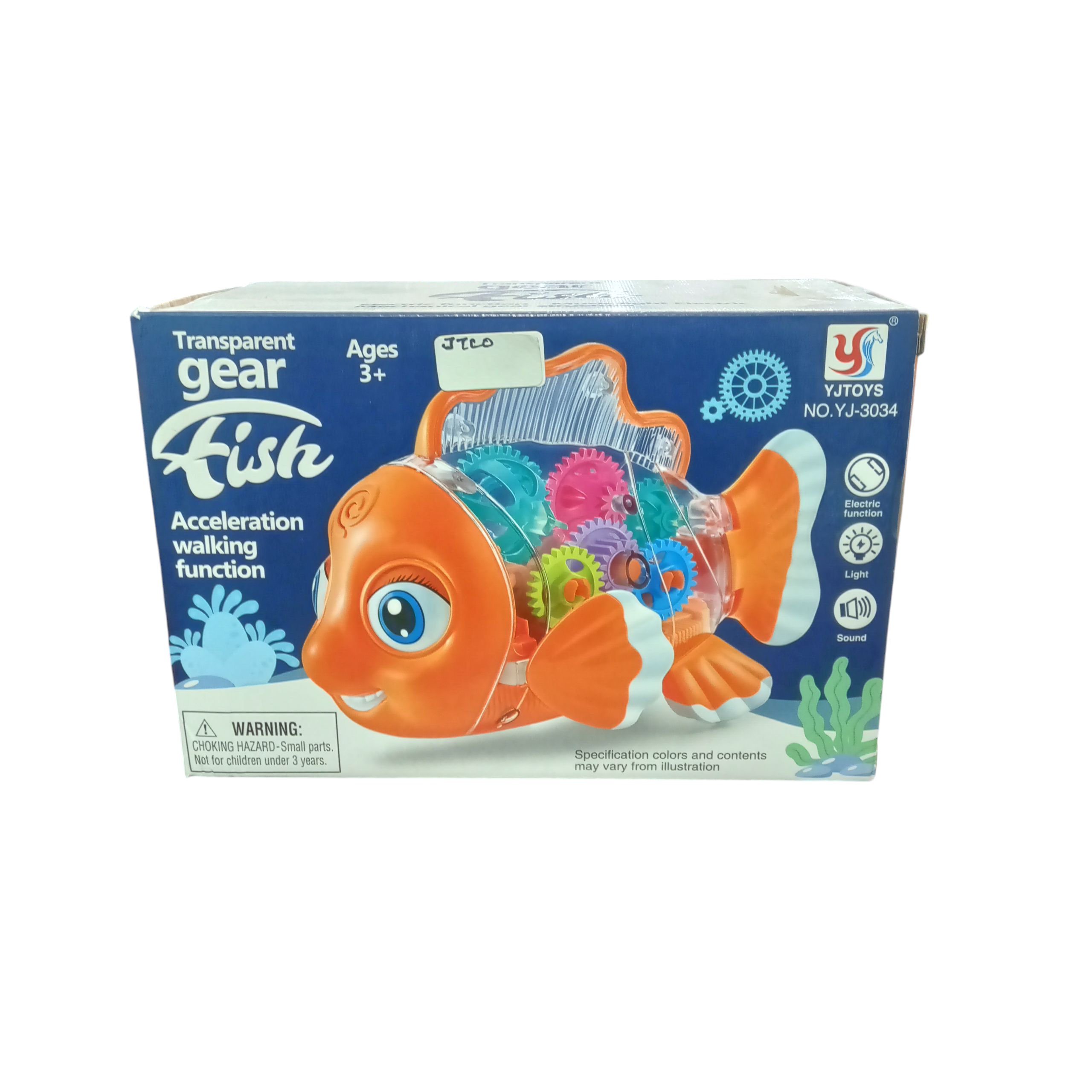 Make playtime exciting with the Transparent Gear Fish Toy! This colorful fish features a clear body that reveals moving gears inside, sparking curiosity and learning. It walks forward with flashing lights and fun sounds, keeping kids entertained for hours.