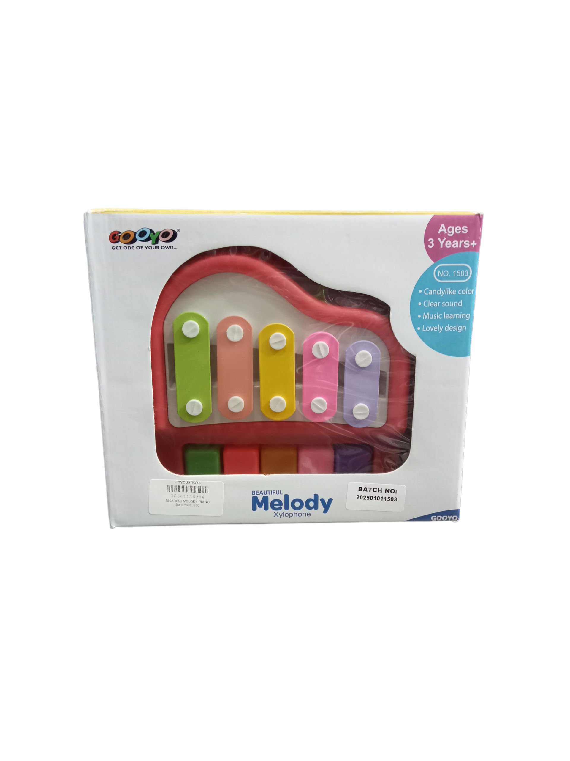 Brand/Series: The brand logo is GooYe Toy, and the product line is titled “Beautiful Melody Xylophone.”